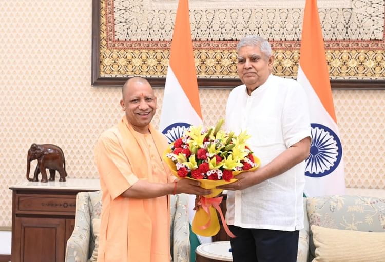 मुख्यमंत्री योगी आदित्यनाथ व उप राष्ट्रपति जगदीप धनखड़।
