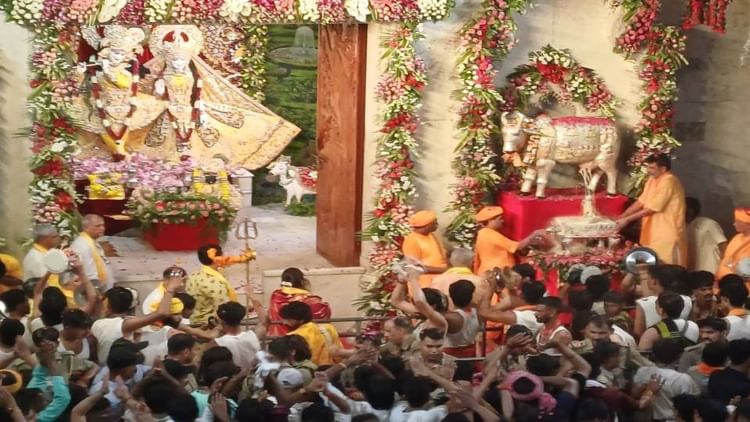 तीर्थनगरी मथुरा में आनंद और उल्लास में डूबे भक्त, भूख प्यास को भूलकर आराध्य के जन्म की प्रतीक्षा में सोमवार मध्यरात्रि घड़ी की टिक-टिक करती सुइयों को व्याकुलता से निहार रहे थे।